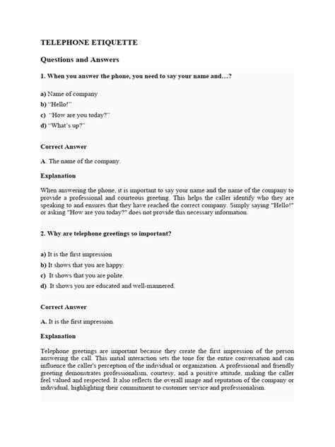 Read Online Etiquette Quizzes With Answers PDF