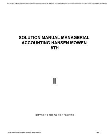 Read hansen mowen solution manual PDF online is a convenient and frugal way to read hansen mowen solution manual you love right from the comfort of your own home. Yes, there sites where you can get PDF "for free" but the ones listed below are clean from viruses and completely legal to use.